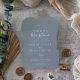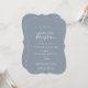 Cette invitation de mariage minimaliste bleu feuille et blanc est parfaite pour une soirée post-elopement élégante. Le design se compose d'une simple silhouette de verdure blanche sur un arrière - plan bleu poussiéreux au style minimaliste classique. Les cartes RSVP sont vendues séparément, ou vous pouvez ajouter des informations RSVP au dos de la carte.