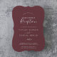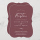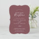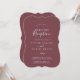 Cette invitation à la réception de mariage bordeaux minimaux en feuilles est parfaite pour une soirée post-elopement boho. Le design bohème présente une silhouette de verdure simple dans une couleur de vin rouge foncé avec un style boho minimaliste classique. Les cartes RSVP sont vendues séparément, ou vous pouvez ajouter des informations RSVP au dos de la carte.