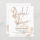 Un rapport qualité-prix BUDGET alternative sur une taille plus petite 4,5 x 5,6" semi-brillant poids 110lbs, qui est d'une épaisseur similaire à une carte postale (cependant ne convient pas à l'utilisation comme carte postale.) VEUILLEZ NOTER qu'il y a UN invitation par feuille. Feuilles Budget Script Bridal Shower Invitation. Ce design moderne pour vos Fêtes des mariées Invités a mis en place un script élégant pour la Fête des mariées en haut et facilement personnaliser avec vos détails en dessous. Un arrière - plan teinté de feuilles de pêche artistique court du bas au haut sous la typographie et est également de l'autre côté.