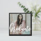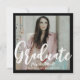 Une invitation à la fête de remise de diplômes avec votre photo préférée avec une superposition de script blanc "Graduate". Vous pouvez ajouter votre nom et votre année de graduation au premier plan et customiser les détails de la fête à l'arrière.