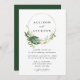 Élégantes invitations de mariage tropicale avec vos noms encadrés par un faux cercle de feuille d'or orné de feuilles tropicaux aquarelles dans les tons verts complétés par le feuillage doré. Personnalisez les invitations tropicales en ajoutant vos détails mariages ci-dessous. L'invitation revient à un arrière - plan de couleur vert foncé. Conçu pour coordonner avec notre collection Tropical Gold mariage.