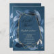 Invitation Feuilles Bleues Cadre Doré Verre Lancement de Mari