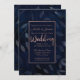 Invitation Feuilles botaniques bleu foncé Mariage rose modern