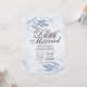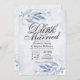 Cartes d'invitation pour mariage moderne / fête de douche de mariée - Feuilles d'aquarelle bleue vintage et écriture manuscrite sur fond d'éclaboussure d'aquarelle.