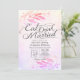 Moderne Invitation de Mariage / Cartes d'Invitation de Réception de Mariage - Fleurs d'aquarelle rose saumon magenta chaud violet et écriture manuscrite sur fond d'éclaboussure d'aquarelle.