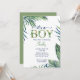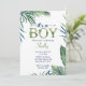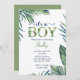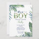 Baby Boy's Modern Watercolor Baby shower de verdure Invitation. L'invitation à baby shower d'aquarelle de ce bébé garçon présente des feuilles vert et bleu marine mignons mais élégants sur un arrière - plan blanc propre. Cette invitation est parfaite pour le baby shower d'un bébé. Faites savoir au monde que c'est un garçon d'une manière moderne et élégante.