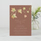 Tombez amoureux de ces invitations modernes et minimes pour les baby showers d'automne. Le design épuré et minimaliste présente un arrière - plan en terre cuite chaleureux agrémenté de feuilles d'aquarelle aux couleurs de l'automne. "Fall in Love with baby [Name}" apparaît sous la forme d'un lettrage blanc cassé, avec les détails de votre baby shower.