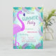 Invitation Feuilles de palmiers, Flamant rose, fête d'été