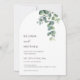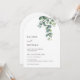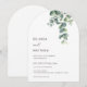Cette élégante invitation de mariage contemporaine minimaliste en forme d'arche présente des feuilles d'eucalyptus peintes à l'aquarelle sur fond blanc.