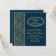 Faire-part d'anniversaire de mariage de 50 ans avec des feuilles dorées sur fond bleu foncé. Facile à personnaliser - changez la police, la couleur, la taille et mettez votre année de célébration.