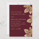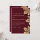 Gardez-le simple et sucré avec cette belle feuille d'huile rouge et or rougeâtre tout en un Faire-part de mariage. L'avant présente des feuilles de chute d'or rustique contre un joli rouge profond. Ici vous verrez les détails de base de votre journée spéciale dans une jolie police crémeuse en or. Le dos présente les mêmes feuilles de chute d'or délicates et donne à vos invités des détails supplémentaires sur votre événement mariage. Excellent choix pour garder votre évènement à thème chute ou couleur foncée dans votre budget!