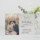 Elégante carte RSVP de mariage botanique monogrammée avec votre propre photo. Pour un mariage de printemps, d'été, d'automne ou d'hiver. Design d'aquarelle de branche d'olivier vert sur arrière - plan en bois de grange. Vous pouvez facilement ajouter votre propre photo pour la rendre très personnelle et unique, et ajouter votre propre texte.