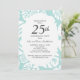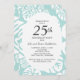 Invitation de fête d'anniversaire de mariage de 25 ans avec des feuilles tropicales bleues et blanches. Le texte, la police, la taille de police et la couleur sont entièrement personnalisables, cette carte peut donc être adaptée pour répondre parfaitement à vos besoins.