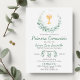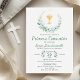 Celebra un hito sagrado con nuestra Encantadora Invitación de Primera Comunión. Decorada con hermosas hojas verdes y un encantador cáliz, esta invitación extiende una cálida bienvenida a niños o niñas, invitando a seres queridos a unirse en este momento special de la primera comunión. Célébrez une étape sacrée avec notre invitation à la première communion de la belle verdure. Décorée de feuilles verts et d'un charmant chalet, cette invitation est un accueil chaleureux pour les garçons et les filles, invitant les proches à se joindre à ce moment spécial de sainte communion.