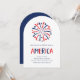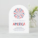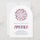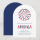Ces invitations élégantes et amusantes aux fêtes du Jour de l'Indépendance en rouge et bleu présentent des feux d'artifice et des étoiles rouges et bleues, et un texte moderne qui dit "Amérique". L'invitation comme montré est une forme d'arc, mais vous pouvez facilement changer la forme ainsi que le libellé pour refléter votre propre type de patriotisme de célébration du 4 juillet.