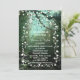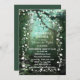 Belle cuisine extérieure rustique Dîner invitation avec des lampes à cordes et une touche de brillant magique parmi les arbres. Texte de typographie de style tableau noir avec bordure florale gracieuse. Un choix parfait pour le jardin ou tout lieu de mariage extérieur.