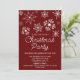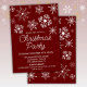 Invitation à la fête de Noël des flocons de neige rouges et blancs de Bourgogne avec une mignonne invitation à la fête fantaisiste pour une fête de Noël festive.