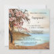 Une invitation fiançailles printanière avec une peinture d'art d'un océan avec un cerisier en fleurs et des papillons aux jolies couleurs roses. Cette conception consiste à réaliser les rêves d'un avenir magique.