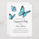 Invitation Fiançailles élégants papillons aquarelle bleue