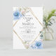 FAIRE-PART fiançailles | Aquarelle en poudre bleu pivoine mariage floral avec cadre en or diamant et fleurs de magnolia dans les tons de bleu et d'ivoire - un cadre géométrique doré multi facettes de style terrarium décoré de verdure et des tons de bouquets de fleurs blush et albâtre. Reverse est une couleur coordonnée gratuite. Personnaliser texte, style de police, couleur et taille. OEuvre originale créée pour BarefootBride™ par © WhimsicalArtwork™ - Il s'agit d'une suite de papier à lettres Mariage complète avec papier à lettres mariage, baby shower et autres articles de papeterie d'événements correspondants.