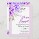 Fiançailles de fleurs d'aquarelle violette lilas invitation. Un joli design mariage qui comprend des fleurs d'aquarelle dans les tons violet et feuille. L'expression "Nous sommes engagés" est en typographie de script.