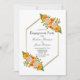 Une élégante invitation à la fête de fiançailles orangées et violacées aux motifs géométriques et modernes.