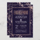 Elégant, chic et moderne, imitation rose d'or contour et de peinture éclaboussures sur bleu marine, invitation de la partie de fiançailles. Ce design classique et sophistiqué est parfait pour un mariage élégant, tendance et élégant. Personnalisez-vous avec votre propre message sur le devant et un monogramme customisé sur le dos. Toute la conception d'impression photo.