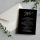 La "Minimal Black Mariage Details Enclôture Card" exhale le raffinement moderne avec son design élégant et monochrome. Parfait pour les couples à la recherche d'une touche raffinée et élégante, cette carte offre un moyen frappant de partager les détails mariages essentiels comme l'itinéraire, l'hébergement ou les notes spéciales. La couleur noire audacieuse ajoute une touche contemporaine tout en conservant une esthétique minimaliste. Il s'aligne parfaitement avec n'importe quelle suite d'invitation, rendant votre communication mariage à la fois élégante et chic sans effort. Idéal pour une célébration moderne et intemporelle.