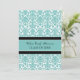 Fête de graduation invitant des cartes personnalisées dans le bleu turquoise clair élégant et sophistiqué, noir et blanc moderne damas floral modèle. Customisez cette carte d'invitation en ajoutant l'année de votre diplôme, votre nom et les détails de votre fête de graduation.