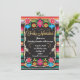 Fiesta mexicaine colorée Feliz Navidad Christmas Party. Il présente des poinsettia et des accents de parties scintillant en faux or inspirés du papel picado, des ornements de noël, des maracas et un arrière - plan de tapis mexicain aztèque.