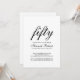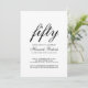 50 Fifty and Fabulous minimal black and white modern script 50th birthday invitation that you can personalize and send out for your fiftieth birthday party celebration. The words "Fifty and Fabulous" are set using popular elegant script font typography - modern, minimal, classic, timeless. The text colors can be changed using the edit menu.