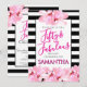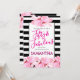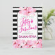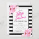 Invitation Fifty & Fabulous Pink Floral Black Stripe Birthday