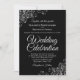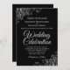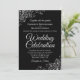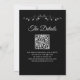 Cette belle faire-part de mariage est élégante, simple et élégante. Il présente un script gris argenté pâle sur un arrière - plan noir classique avec un faux film argenté dans chaque coin. Le design sobre est compensé par les ornements et les tourbillons ornés de l'oeuvre d'art. Le dos a un code QR personnalisable et note de détails afin que vous puissiez diriger vos invités vers un site Web pour des informations et RSVP.
