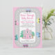Conduisez à travers des invitations de douches pour bébés avec des voitures mignonnes et maison sur un arrière - plan à point rose. Ce lecteur par invitation baby shower est facilement customisé avec les détails de votre événement.