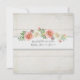 Palette de couleurs tendance, muet, éthérée, de rose pâle, bordeaux et rose rose foncé, associée à blanc doux, charbon de bois, vert bleuté et gris. Des lignes simples et propres de blanc et de violet rose floral et feuillage swag sur le devant et gris doux arrière - plan en bois avec une bande de texture lin blanc et une bordure de fleurs sur le côté arrière a une place pour votre RSVP et l'information de registre. Copyright artistique Audrey Jeanne Roberts, tous droits réservés.