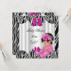 Invitation Fille Baby shower mignonne Bébé rose chaud Zebra