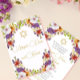 Une jolie invitation à la cérémonie de baptême hébraïque fleurie. Le design est loral sur un arrière - plan blanc avec un texte de couleur or qui est facilement changé à votre information. Choisissez parmi une gamme de types de papier. Il y a trois noms, mais vous ne pouvez utiliser les deux noms que si c'est pour les jumeaux. L'envers est orné d'un motif rose floral et blanc et d'une étoile de David avec son propre nom personnalisé.