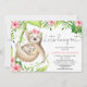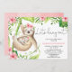 Invitation Fille bébé paresseux rose verdure tropicale shower