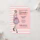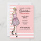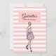 Conçu d'après mon illustration d'une belle dame aux cheveux blonds portant une superbe robe de cocktail élégante et classique à roses roses, chaussée de magnifiques escarpins noirs. Le design présente un motif rayé rose pêche et blanc - un style chic et moderne. Personnalisable avec votre propre texte pour un design personnalisé.