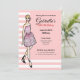 Invitation Fille blonde avec une robe de cocktail à roses ros