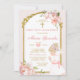 Fille Blonde ÉDITABLE Priant Floral Première Communion Invitation Élégante Blanc Et Rose Rose Fleur Bleu Christening Première Communion Sainte Invitation Croix d'or Cute Girl Primera Comunión Invitation