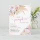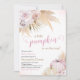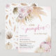 Plongez dans la douceur de l'automne avec cette invitation de Baby Shower Fille Boho Pumpkin douce et rêveuse. Avec des citrouilles rose pâle, de l'herbe de pampa et des fleurs aquarelles, ce design élégant mélange le charme boho et la féminité rustique pour une baby shower vraiment inoubliable. Célébrez votre petite citrouille avec style avec cette invitation cosy chic, car une petite fille est en route ! BBS477