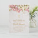 Cette élégante invitation florale pour l'invitation d'une jeune fille comporte, dans sa partie supérieure, des orchidées roses et une orchidée blanche et une croix dorée en dessous, au-dessus du texte, sur un fond en marbre blanc. Le nom de l'enfant est écrit dans un élégant script calligraphique. Tout le texte est d'une couleur jaune doré.