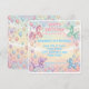 Célébrez le jour spécial de votre petite fille avec cette invitation de fête d'anniversaire adorable avec des ballons en forme d'animaux pastel. Conçue avec des couleurs pastel douces, des ballons d'animaux flottants ludiques. Que vous planifiez un premier anniversaire, une fête de toddler ou simplement une fête sur le thème pastel, cette invitation donne le ton parfait pour une célébration d'anniversaire magique.