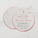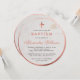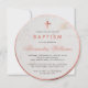 Il y a un cadre rond en or rose sur les deux côtés et une croix en or rose au-dessus du texte - les deux en faux or rose. L'occasion « Baptême » et le nom sont en rose, le nom est écrit en écriture calligraphique.