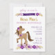 Invitation à une fête pour un anniversaire ou une douche sur le thème du cheval ou du poney en violet et or. Contactez le vendeur pour des options de couleur personnalisées.
