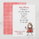 Jolie fille en bâton avec du vin rouge dans un verre, cheveux et robe rouge sur fond blanc doux pour la fête des 40 ans.