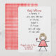 Jolie fille en bâtonnets avec du vin rouge dans un verre, cheveux et robe à carreaux sur fond blanc doux pour les 70 ans.