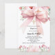 Un fond blanc, décoré d'un grand ruban rose et, d'une croix dorée et de fleurs roses. Personnalisez et ajoutez un nom et des détails détails.