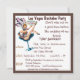 Cartes d'invitation pour enterrement de vie de garçon à Las Vegas avec le panneau de bienvenue et une illustration de fille de spectacle de casino . Facilement personnalisables pour des thèmes de casino dans d'autres lieux également.La tenue amusante de la fille de spectacle, le verre à cocktail et le célèbre panneau de bienvenue de Las Vegas créent un design personnalisé cool pour les fêtes de mariage.